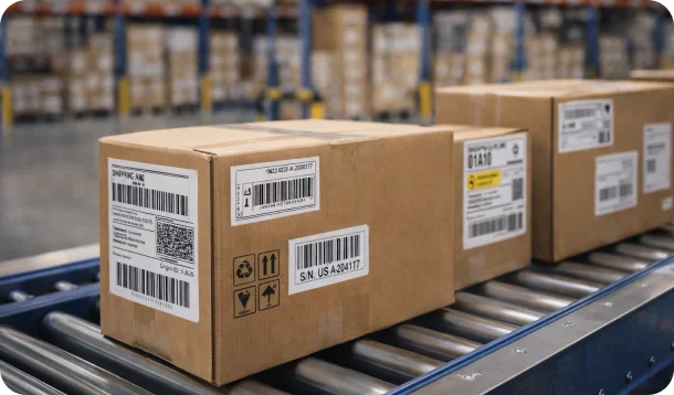 Labeling is the process of applying identification labels to products, packaging, or pallets to ensure accurate tracking, traceability, compliance, and distribution throughout the supply chain. Labels may include product information, barcodes, serial numbers, lot codes, handling instructions, or customer-specific data.
